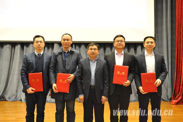 致辞中,胡金焱谈到,山东大学高度重视创新创业教育工作,专门成立了创新创业学院,并搭建了创新创业教育培养平台、山东大学创客街、创业服务孵化器三个功能区,建立了教育体系、培训体系、孵化体系、导师体系、项目与基金体系,稳步推进学生创新创业工作。他表示,大学创新创业教育的核心在教育,其目标是打下基础,以便于学生将来在社会中有合适的土壤的条件下,能够得到进一步发展;大学教育必须改变传统方式,要将知识教育、专业教育与创新创业教育相结合。秦工国际董事长秦长岭、德国3S软件公司大中华区总裁马立新、百花智谷众创空间创始人孙元强、上海世茂集团山东区域总裁陆术东受聘“山东大学学生职业生涯与创业发展导师”,胡金焱为四位嘉宾颁发聘书。