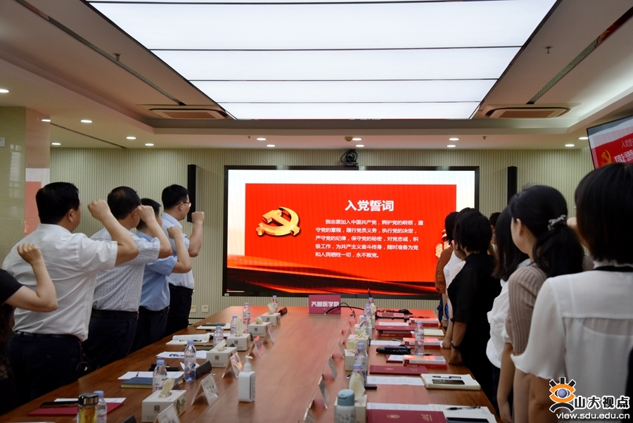 随后,齐鲁医学院党工委委员、副院长马春红为过“政治生日”的九名党员赠送了理论书籍。齐鲁医学院机关党总支全体党员在机关党总支副书记蔡清香的带领下重温了入党誓词。
