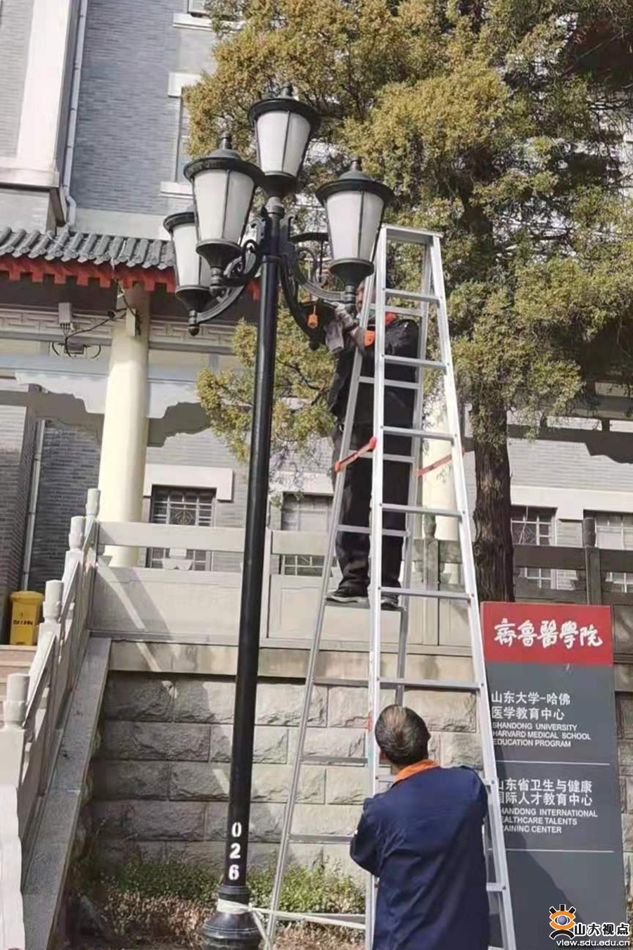 开展“医路有我真心为你”活动。趵突泉校区办坚持开展“医路有我 真心为你”走访学院、走进社区活动,回应师生群众诉求,为师生群众办实事、办好事。先后在公共教室加装插座450个,在节能环保的基础上给路灯增亮,由原来40W的节能灯更换为80W的节能灯,使校园夜间更加明亮;修复易积水路段3处,方便师生出行。