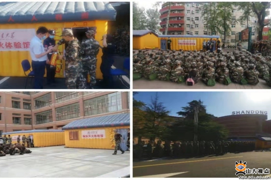 新生军训期间组织模拟逃生演练。开学伊始,公安处联合多部门对济南校总部新生开展消防安全教育并组织模拟灭火、模拟逃生演练活动,充分利用新生军训期间便于组织,易于演练的特点,结合我们现有的模拟逃生屋和灭火体验馆,分校区、分批次组织新生开展有计划、有针对性的安全教育体验与逃生演练。让每位新生入校时就学会“用知识守护生命,用技能捍卫安全”,充分了解并且熟练掌握突发火灾事件时的处理流程,提升消防安全意识,增强自我逃生和自救能力。
