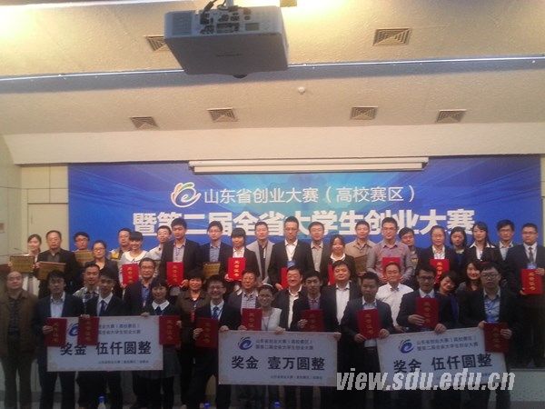 [本站讯]10月15日至16日,第二届山东省大学生创业大赛决赛在青岛大学举行。山东大学两支创业团队分别获创业组第一和初创组第二,并荣获山东省创业大赛(高校赛区)暨第二届全省大学生创业大赛优秀组织奖。山东省人力资源和社会保障厅副厅长李伯平出席闭幕式并为获奖者颁奖。