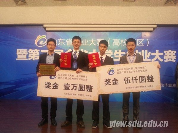 本次大赛参赛对象分为创意团队、初创企业、成长企业和创业项目四类,涵盖创业全过程,共收到来自全省各个高校共计160多个项目。山东大学创业项目“新型双光子荧光探针”以及初创企业山东南湖软件科技股份有限公司在海选、预赛和决赛中发挥出色、成绩优异,最终分别获得了一等奖(奖金10000元)、二等奖(奖金5000元)。同时,“新型双光子荧光探针”项目被赛区组委会推荐参加山东省创业大赛总决赛。前期,山东大学已经有两支团队通过地市组的选拔进入总决赛。