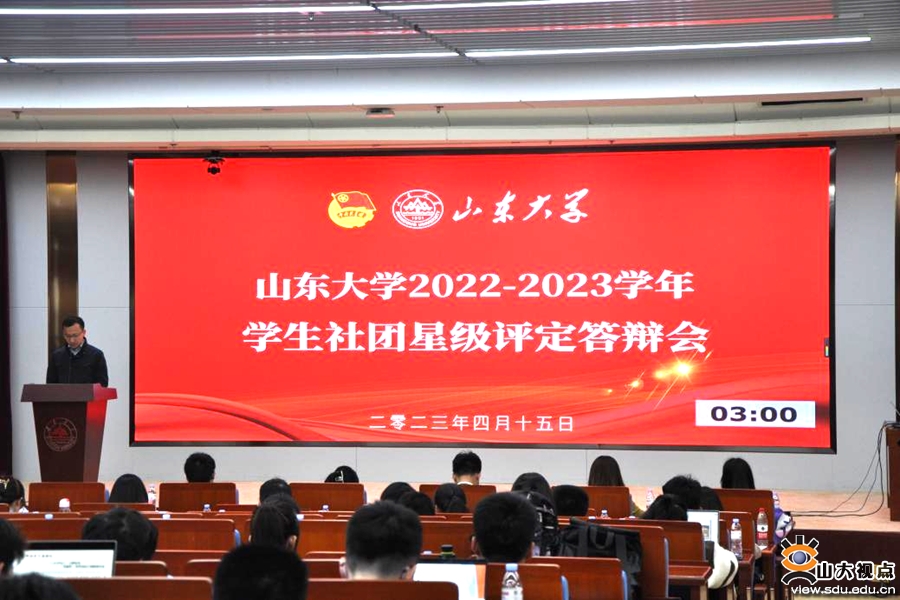 [本站讯]为以评促建、以评促优,引导和推动学生社团健康有序发展,4月15日,校团委组织开展山东大学2022—2023学年学生社团星级评定答辩会。学校79个学生社团依次答辩,对建设概况、特色活动、未来展望等方面进行个性化展示。