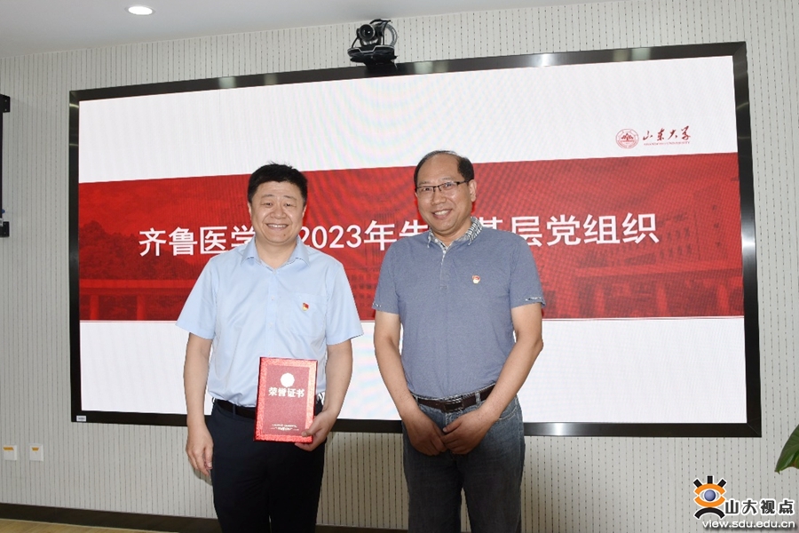 全体党员在齐鲁医学院机关党总支纪检委员汤煜春同志的带领下重温入党誓词。齐鲁医学院机关党总支书记王明良同志宣读了《山东大学齐鲁医学院党工委关于表彰2023年优秀共产党员、优秀党务工作者、先进基层党组织的决定》,号召全体党员干部向受到表彰的优秀共产党员、优秀党务工作者和先进基层党组织学习。