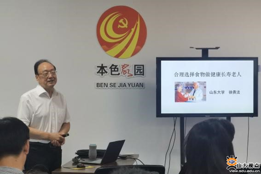 [本站讯]为丰富老同志的营养学知识,促进老年人身体健康与生活质量提升,9月22日上午,离退休工作处在趵突泉校区离退休职工活动中心举办养生讲座,由第二党总支第五支部(公共卫生学院支部)邀请了支部党员、资深营养学专家徐贵法教授为大家普及营养学和科学饮食的相关知识。