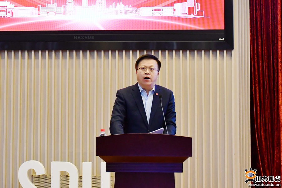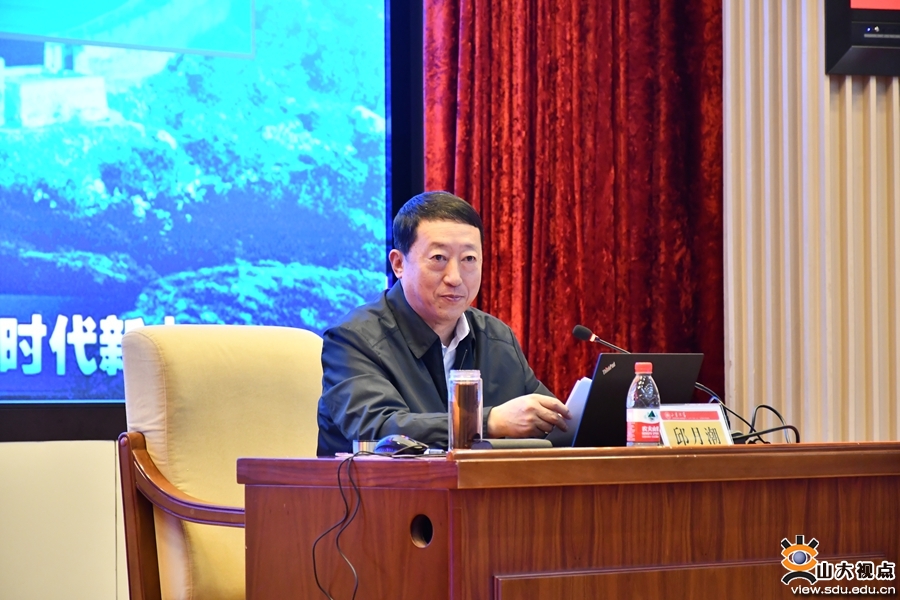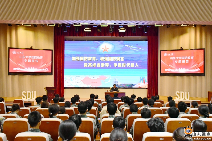 邱月潮以“加强国防教育,增强国防观念,提高综合素质,争做时代新人”为题,结合大量数据和生动案例,从“什么是国防,为什么要建设强大国防,怎样建设强大国防,广大青年学生要自觉加强国防教育、提高综合素养”四个方面,用辩证的逻辑思维和深邃的历史眼光,为现场师生带来了一场精彩的国防教育专题报告。邱月潮对山东大学结合专业特色、结合学生需求和结合时代要求创新性开展国防教育活动表示高度肯定,并勉励广大山大学子要增强国防观念、国家安全意识和忧患危机意识,坚定理想信念,培养崇文尚武精神,丰富思想文化内涵,强化责任担当,争做时代新人。