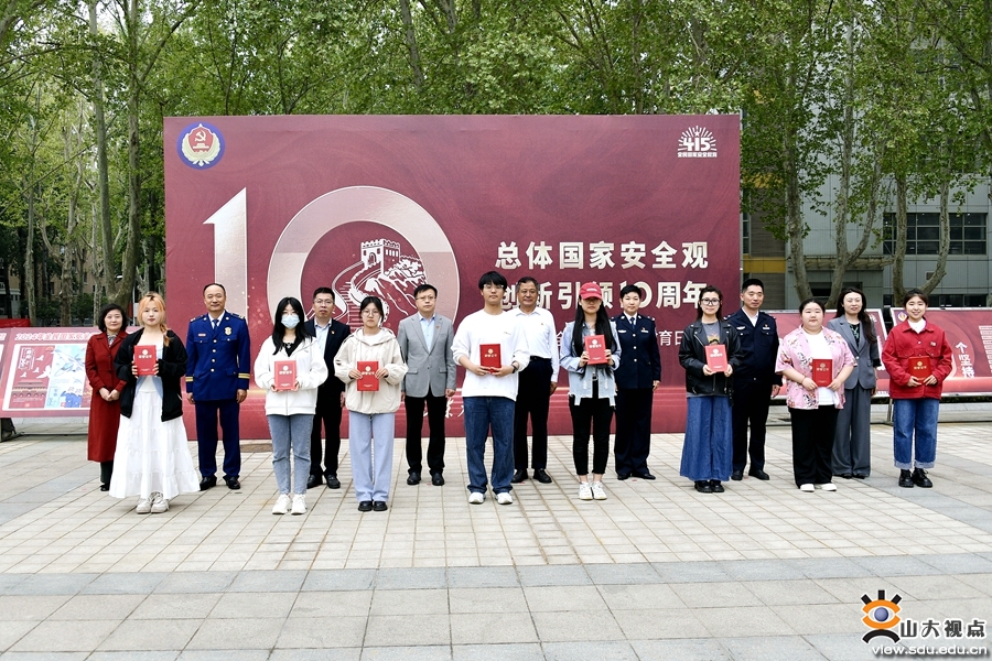 现场还为2024年国家安全教育活动优秀组织单位、山东省大学生国家安全知识竞赛校内评选先进个人、山东省全民国家安全宣传教育创意大赛校内评选优秀小组,以国家安全为主题的绘画征集评选获奖个人代表颁发奖牌和证书。