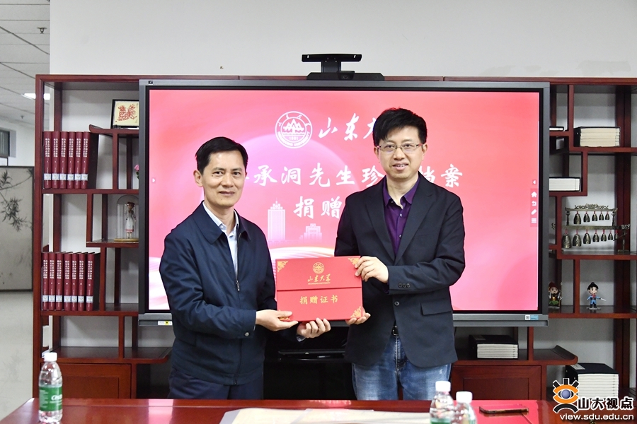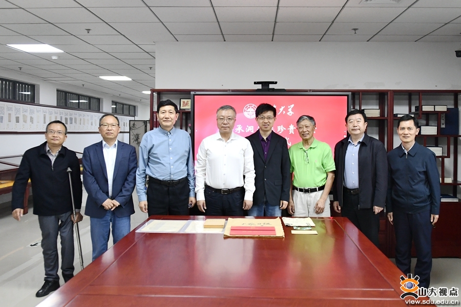 [本站讯]4月19日,华东师范大学古籍研究所丁小明教授向山东大学捐赠一批潘承洞先生珍贵档案。校党委书记任友群、党委常委桑晓旻、《文史哲》编辑部主编兼主任杜泽逊、图书馆馆长赵兴胜等出席捐赠仪式。捐赠仪式在中心校区蒋震图书馆举行,档案馆馆长、校史办主任赵海主持仪式。