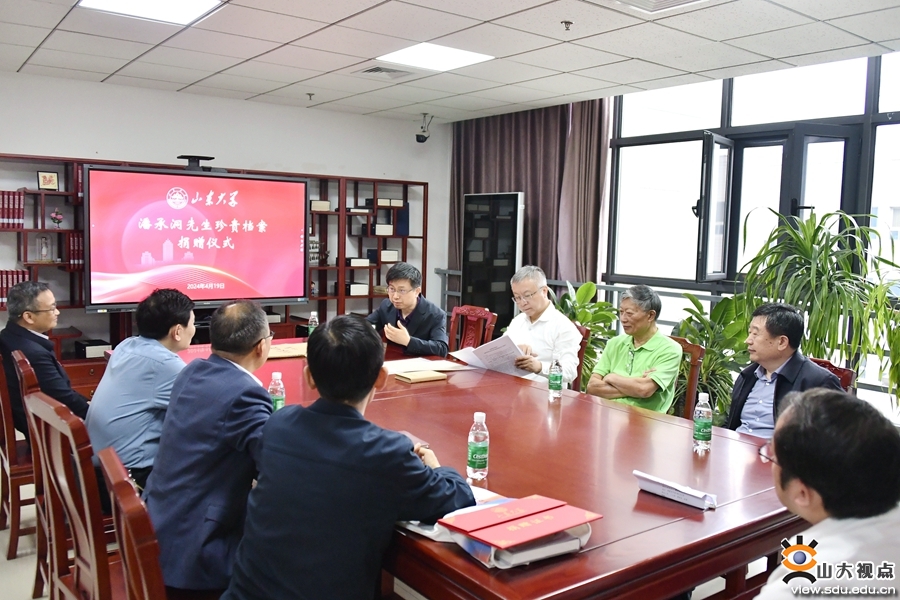 赵海代表山东大学接受捐赠,并向丁小明教授颁发了捐赠证书。