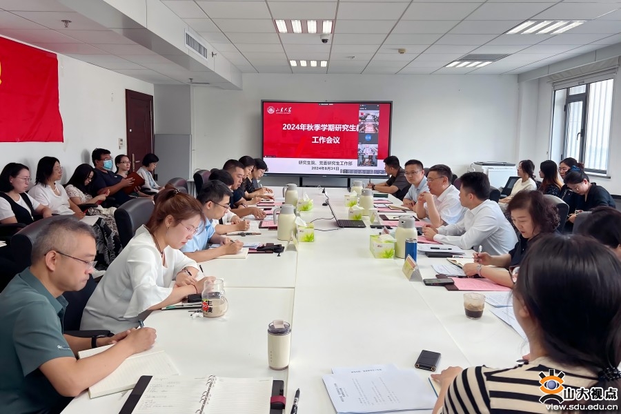 研究生院副院长、党委研究生工作部副部长郎剑锋主持会议。研究生院副院长、副部长高弟,威海校区副校长兼学科建设与研究生教育办公室主任夏利东,青岛校区学科建设与研究生教育办公室常务副主任屠长河,齐鲁医学院教学管理办公室副主任王琳琳分别围绕2024年秋季学期研工工作思路、威海校区、青岛校区、齐鲁医学院研究生教育总体情况和新学期工作设想作专题发言。