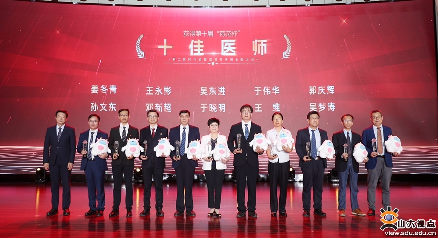 李泉,第二医院党委副书记孟彦,党委副书记孙永国,副院长余之刚、总会计师于先兰分别为第十届“荷花杯”奉献奖获奖者、十佳医师、十佳青年医师和2024年山东大学第二医院十佳短视频科普达人颁奖。