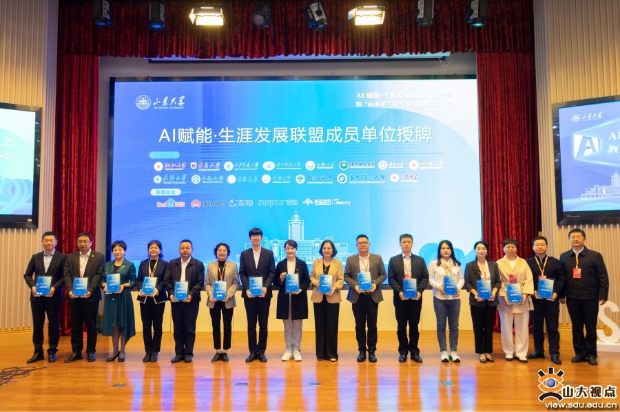 大会还聘任了“山东大学学生职业发展导师”“山东大学学生职业发展校友导师”,并为“山东大学学生职业发展咨询工作室”授牌。大会主题论坛环节上,联盟高校、企业代表围绕AI赋能智慧就业、生涯发展咨询等方面分享了优秀经验,共同探讨AI赋能生涯发展的新机遇、新挑战与新未来。