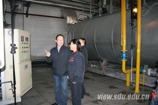 在锅炉房,张永兵实地察看了锅炉房的运行情况,认真听取了燃气锅炉气源供应、用户反馈意见、日补水量等情况汇报。他强调,对待天越冷供气越发不足的老问题,要主动争取气源,最大限度让师生员工享有满意的供暖服务;要关注供暖末端用户,为他们排忧解难;要做好供暖情况摸底调查和数据统计,为下一步供暖系统改造提供依据;要树立节能意识,加大措施解决外管网的跑冒滴漏问题;要加强宣传,争取师生员工的理解,接受他们的监督。
