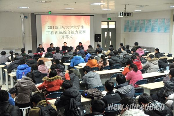 12月28日,2013山东大学大学生工程训练综合能力竞赛在工训中心成功举办,本次大赛由山东大学本科生院主办、工程训练中心承办。山东大学资产与实验室管理部部长马传峰、本科生院副院长王丰晓参加开幕式并致辞以及机械学院教授冯显英、材料学院教授张景德等担任本次大赛的专家评委,中心主任朱瑞富教授致开幕词,刘新副主任主持开幕式。