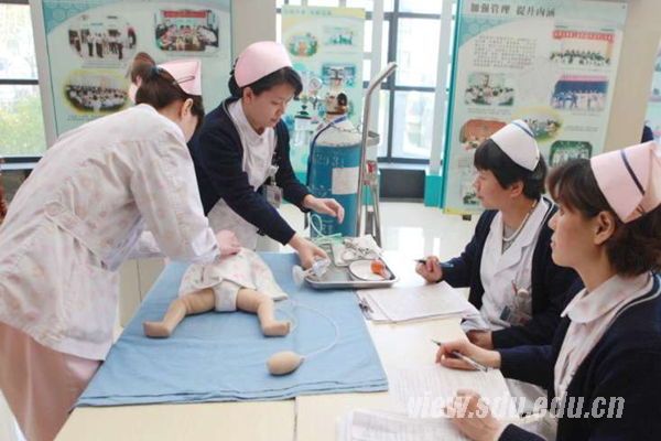 为了进一步强化全院护理人员的急救能力,契合等级评审对心肺复苏进行两年复核的要求,第二医院护理部结合《2010年心肺复苏新标准与指南》,于3月中旬先对病区护士长及带教老师进行培训,然后再以病区为单位由护士长及带教老师组织全员护士培训。4月1日、2日,现场考核分成人组和新生儿组,分别在健康大讲堂和临床技能中心两个考点共十个考核组进行。考核采取病例场景分析模式。考场秩序井然,护理人员态度认真,动作规范。监考老师对存在的问题现场给予点评与示范,护理人员考核合格率达到100%。