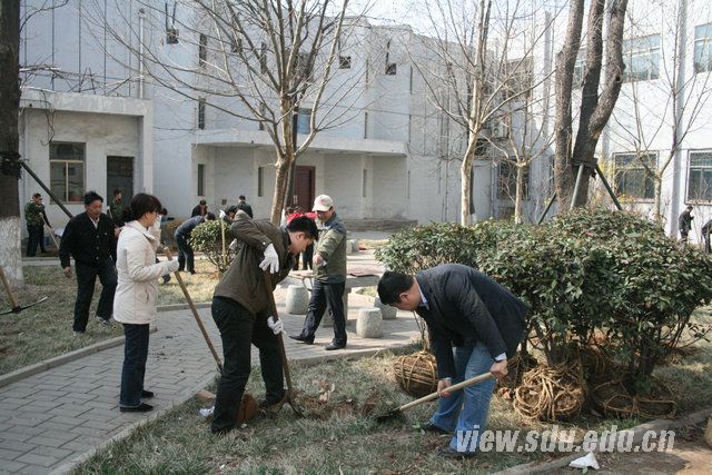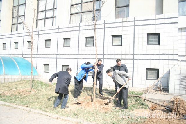 [本站讯]为创建“平安校园、生态校园、智慧校园、和谐校园”、推广“低碳生活”理念、树立“植绿、护绿、爱绿、兴绿”风尚,促进环保意识的养成,3月13日,后勤保障部组织党员干部、“三八”红旗手、“五好家庭”代表参加义务植树活动。副校长张永兵参加了此次活动。 植树活动中,全体参与人员紧张有序地进行挖树坑、扶枝培土、浇水等,一株株三角枫、小叶女贞、金叶女贞、红叶石楠很快便竖立在科学会堂东侧绿化带内,为校园再添新绿。汗水虽然湿透了众人的头发和衣服,但却丝毫没有减弱大家劳动的热情,看到整齐的苗木为初春增添了一抹生机,大家脸上露出了抑制不住的喜悦。 后勤保障部部长李振奎,党委书记李旭新,财务部副部长何维兴等40余人参加了义务植树活动。