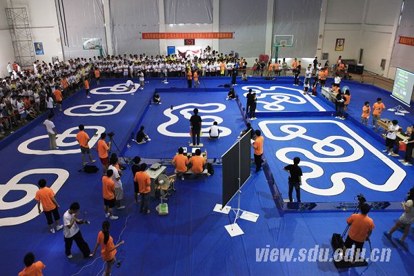 开幕式结束后,比赛在威海校区风雨操场正式开始。来自全省37所高校的213支参赛队伍分为光电组、电磁组和摄像头组等组别展开了决赛名额的争夺,最终各组别分别选出了18支队伍进入到决赛。在21日上午举行的决赛中,赛道比预赛加长了一倍,跑道设计难度也有所加大,赛道的一侧还设有一处坡道,进一步增加了比赛的挑战性,也使得决赛更显精彩和激烈。经过激烈角逐,最终共有29支队伍获得本次比赛的一等奖。