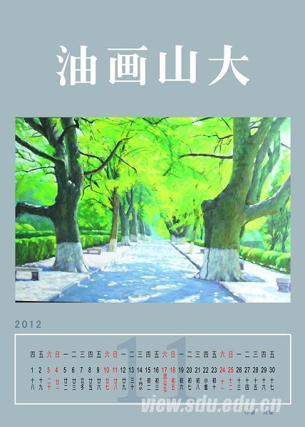 [本站讯]继去年推出《山大校园风景》挂历之后,山东大学近日将推出2012年《油画山大》挂历。这是山东大学再次将校园风景以油画的形式登上挂历进行展示。