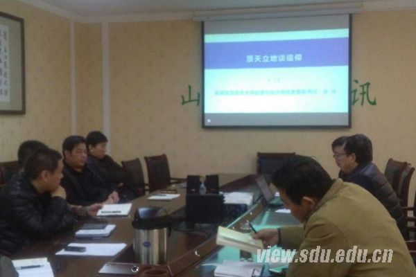 [本站讯]12月1日,山东大学交通通讯管理服务中心党支部组织全体党员观看南京航空航天大学能源与动力学院党委副书记徐川的“两学一做”学习教育优秀党课——《顶天立地谈信仰》专题片。支部书记刘明培主持会议。