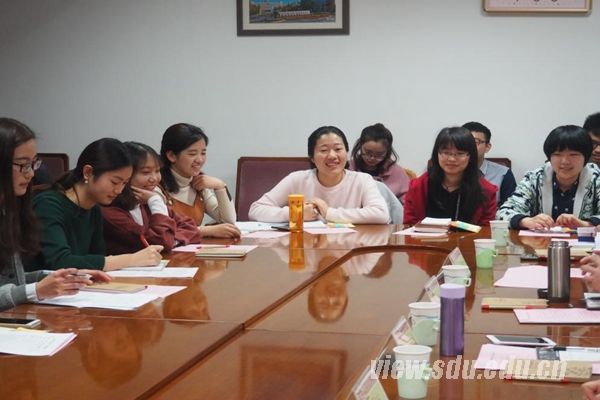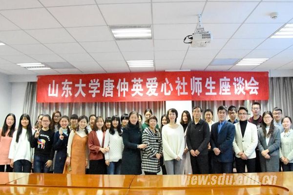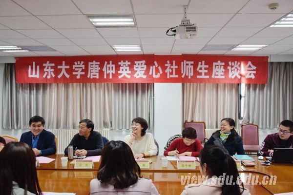 [本站讯]3月15日,山东大学唐仲英爱心社师生座谈会在中心校区举行,唐仲英基金会项目总监朱莉、项目主管张小丽、高校指导教师宣红,山东大学党委学生工作部副部长傅艺娜、山东大学合作发展部副部长艾斌参加座谈会。