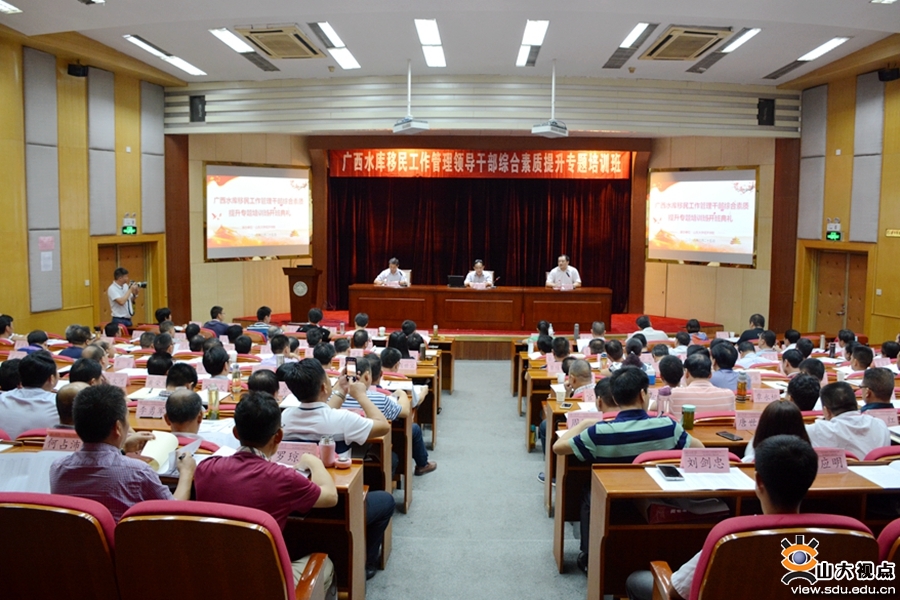 [本站讯]6月25日至30日,广西水库移民工作管理领导干部综合素质提升专题培训班在中心校区举行。广西壮族自治区移民工作管理局党组副书记、副局长覃峰,山东大学经济学院副院长石绍宾出席开班典礼并致辞,广西壮族自治区移民工作管理局教育培训处处长覃革主持典礼。