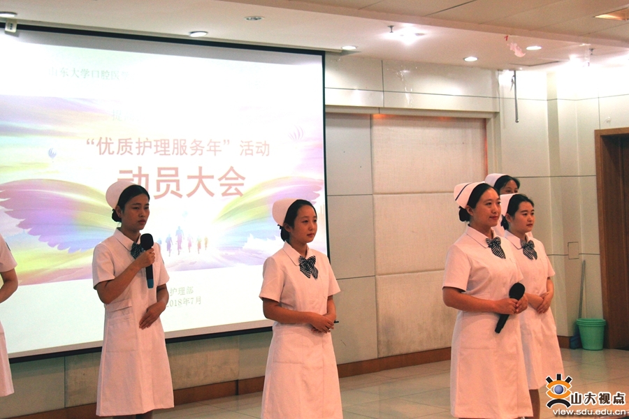山东大学口腔医院“优质护理服务年”活动以“提高护理质量,深化优质服务”为主题,旨在打造一支形象好、语言美、服务精、技术高、履职全、重创新的护理队伍,推动平安医院的建设,提升山东大学口腔医院的服务品牌,保障医疗安全,服务健康山东。据了解,山东大学口腔医院“优质护理服务年”活动自今年4月开始预热,期间,医院先后组织“中国梦 劳动美”四手操作技能大赛,“我们一起学急救”——“健康中国,护理助力”公益活动等一系列活动,使医院护理人员临床操作技能的规范性、院感意识、医护配合的协调性及熟练程度、健康教育及人文关怀意识得到进一步提高,为“优质护理服务年”活动的开展奠定了良好基础。