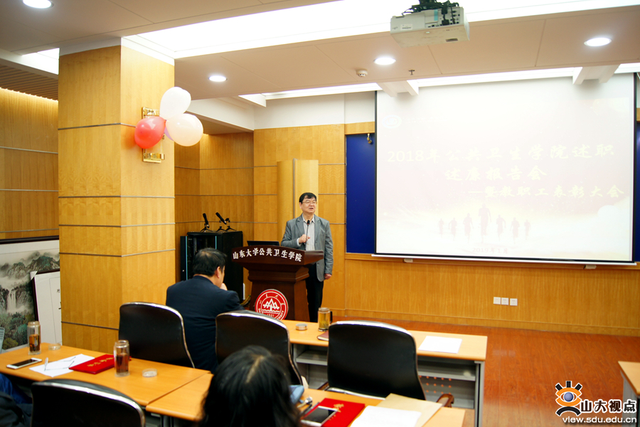 [本站讯]1月14日,公共卫生学院举行学科交流研讨暨总结表彰大会。院长李士雪作工作报告,学院党委书记李士保主持会议并发言,党委副书记王永杰以及副院长薛付忠、赵秀兰出席研讨并汇报工作。