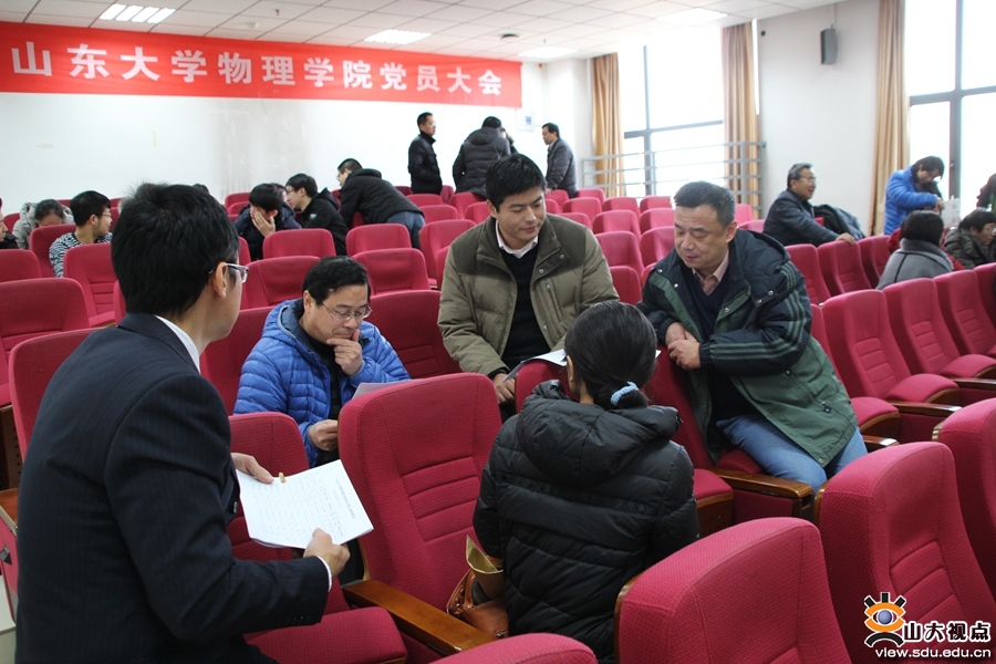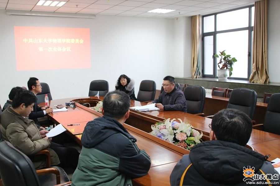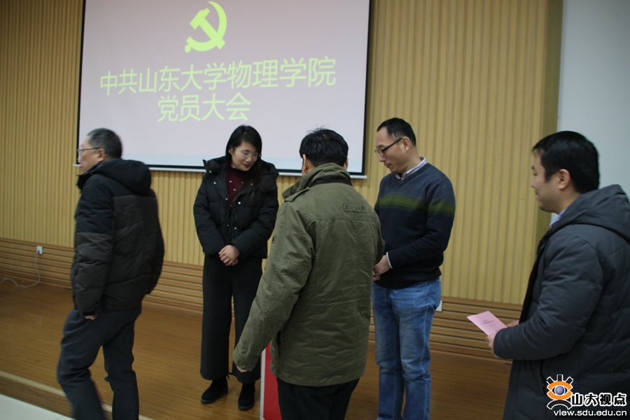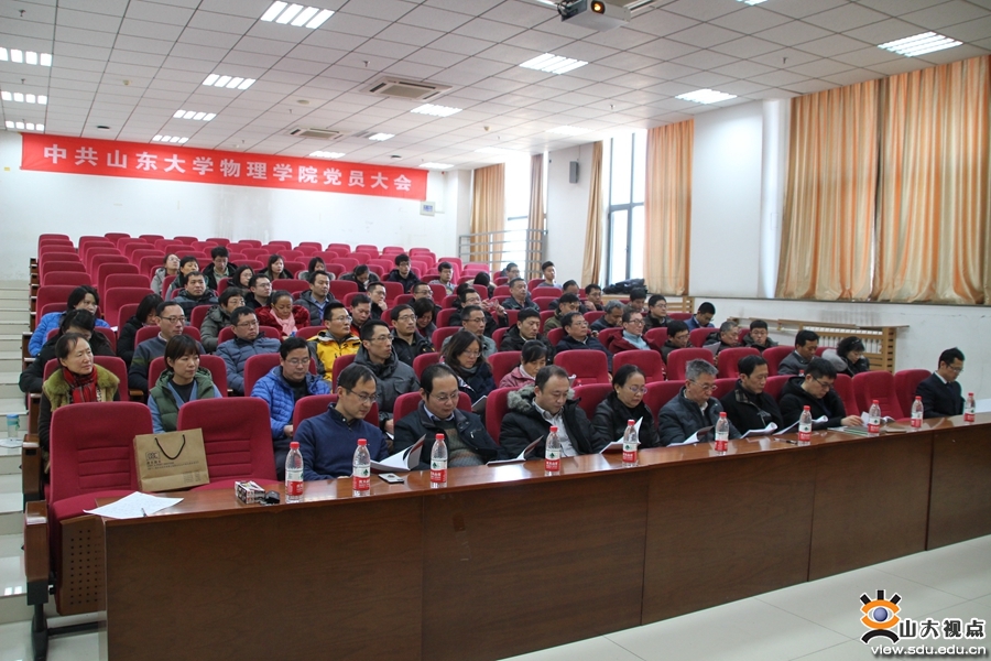 [本站讯]1月15日,中国共产党山东大学物理学院党员大会在中心校区召开。郁鹏同志代表上一届党委会作题为“贯彻落实学校十四次党代会精神,追求卓越,建成世界一流物理学科”的工作报告,于新好同志向与会党员代表作了关于党费收缴使用情况的报告。吴天柱同志主持会议。