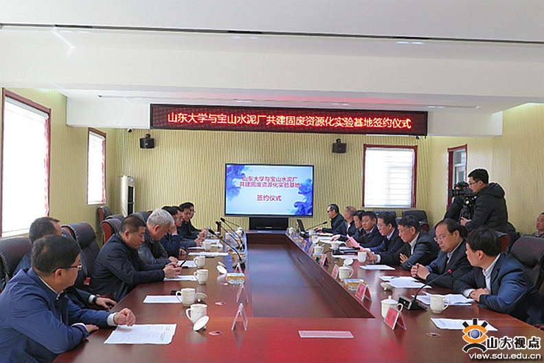 [本站讯]近期,山东省淄博市淄川区举行了“山东大学与宝山水泥共建固废资源化实验基地签约暨揭牌仪式”。燃煤污染物减排国家工程实验室主任董勇,学院副院长王文龙,党委副书记滕玉军,市环保局副局长张勇、陈勇,淄川区副区长赵军,淄川区科技局局长汪洪新,淄川区环保局局长贾士龙,岭子镇党委书记孙艺兵及宝山水泥厂董事长贾木海等人出席仪式,镇党委副书记、镇长常忠主持签约仪式。