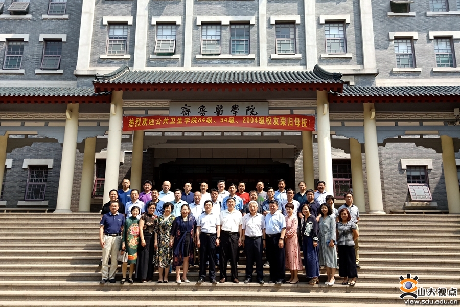 上午,在趵突泉校区综合楼和9号楼门前,校友们穿上定制的短袖与学院领导合影留念,纪念美好时光,同时通过视频对2019届学弟学妹送上了美好祝福。