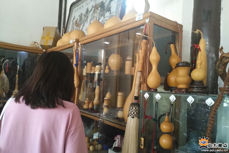 7月5日至11日,团队成员奔赴济南各地进行调研走访。在百花洲附近的后宰门街,调研小组参观了许多经营传统手工艺的店铺,并与艺人进行了交流。这些店铺是在历城区政府的支持下开设的,其中有很多济南特有的手工艺品如核雕、发丝绣、兔子王等。调研小组既惊叹于这些手工艺品的精美和艺人的巧思,同时又为鲁绣等艺术因知名度低、难于产业化等原因而陷入发展困局感到深深的遗憾。