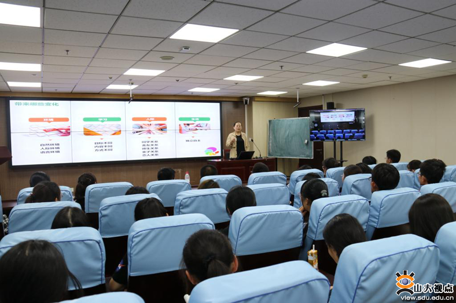 开展各类指导性讲座,助力新生全面发展。为帮助新生尽快融入学习生活,提高学习效率,9月12日上午,图书馆陶莉老师对新生们进行了院图书馆的知识培训。哲社学院教务处蒋霞老师对新生进行专业课程方面的知识培训。为培养新生良好心态、尽快适应大学生活,9月24日晚,学院举行新生适应性专题讲座,李永卫老师从环境、学习、人际、生活四个大方面详细阐述了已出现和可能出现的变化,通过分析这些变化对于不同学生心态产生不同影响的原因,倡导同学们重新进行自我定位,提高自身心理健康素养,以培养出能够了解、接受、关怀、尊重自己和他人的、自信乐观的、能够对自己行为负责的山大学生。