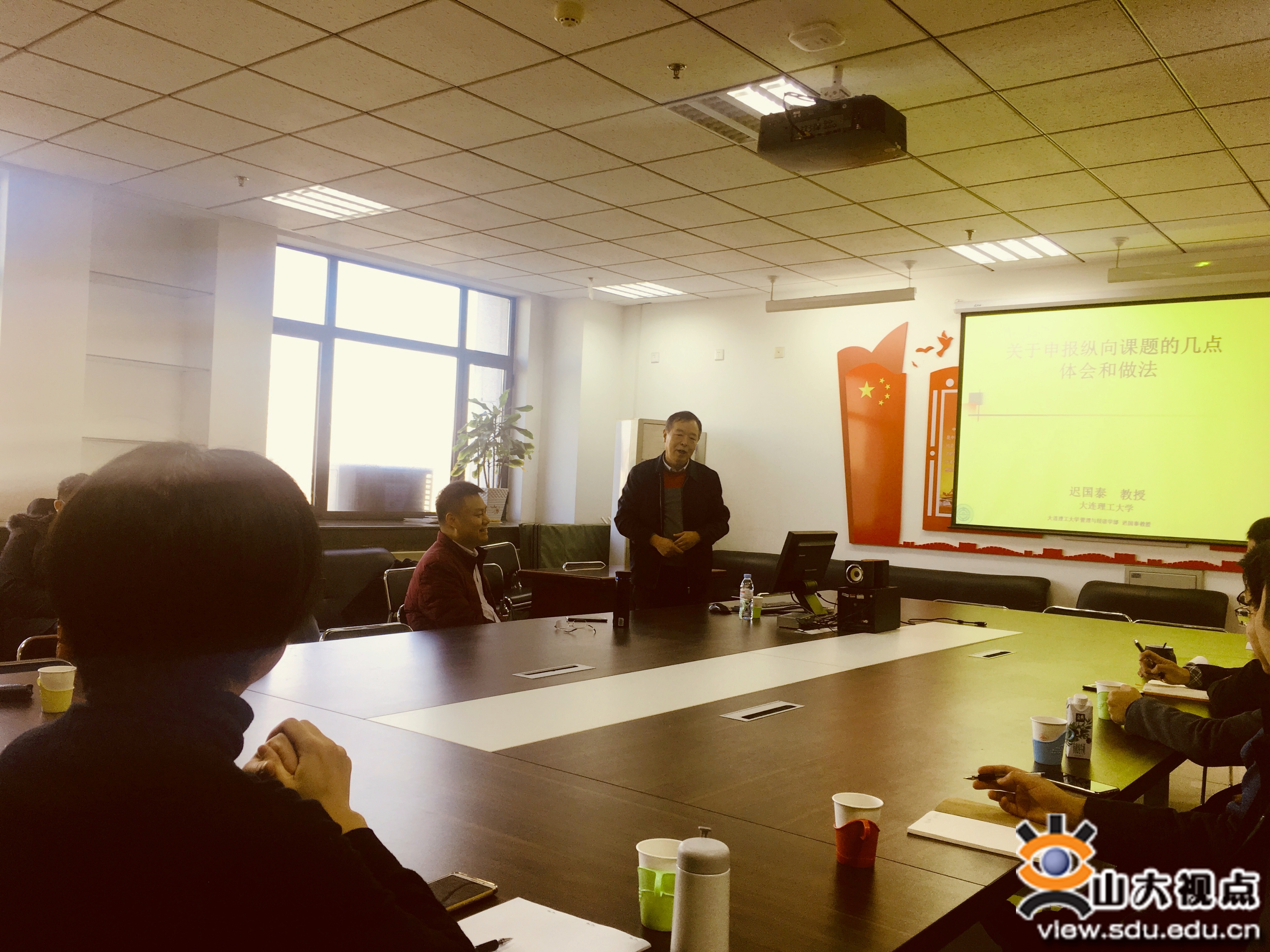 迟国泰首先介绍了国家课题立项依据撰写的要点,说明了评审一看立论依据,二看研究内容,三看创新。因而立项依据是申报书的精华。迟国泰深入讲解了选题的内容,包括选题的具体切入点、选题三要素、如何引经据典等内容。他表示,选题切记不可选难、选大,应尽量避免选择竞争较为激烈的热门问题。他还提到,申报人应该通过分析现有研究的特征、弊端、空白,展示其对问题的深度理解,焦点必须集中。同时,对于问题、困难以及解决问题的思路必须开门见山。随后,迟国泰分享了他在撰写研究内容以及可行性分析方面的心得体会,着重介绍了研究思路的可行性。并结合自身经验,与在场师生分享了自己的创新点方程式,给老师们指出了几种需要注意的常见错误。与会教师结合自己在课题研究中的收获及困惑与迟国泰进行了探讨。