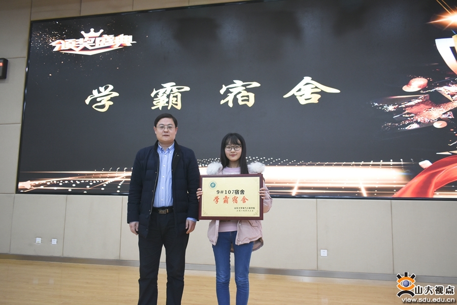 随后,典礼相继表彰了“优秀班集体”和“学霸宿舍”的集体。在采访环节中,2017级4班的代表介绍了班内自觉自习、互帮互助的良好风气,表明班风建设的重点在于学风建设;学霸寝室的代表介绍了相同的生活习惯、彼此接纳及共同的目标之于寝室成员的可贵,均发挥了良好的示范引领作用。