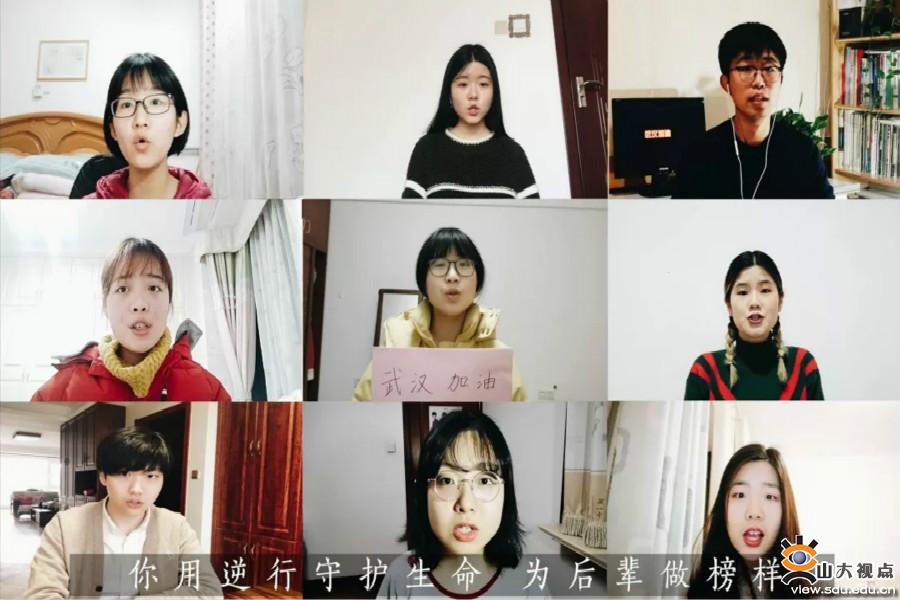 正是在广大医务工作者不计生死、逆风而行的精神鼓舞下,在全院抗疫医护老师无畏艰险、驰援湖北的行动感召下,临床医学院广大师生一同体会着“小我”与“大爱”,并萌生出用歌声向一线抗疫人员致敬的想法。参与本次“云”合唱的39名临床医学生中,有的是来自山东大学齐鲁医院、第二医院、济南市中心医院等5所教学医院的见实习学生,有的才刚刚开启临床医学专业的学习生涯。他们分布在祖国的16省份31个城市,前期,大家依托曲谱、歌词和伴奏完成了独自排练,用手机录制好各自的演唱音频、视频,最后经过拼接剪辑才成为大家看到的作品。从改编歌词到制作完成,前后共历时半个月,合唱作品最终于2月19日在临床医学院微信公众平台正式推出,短短数时,点击量已达5000余次。