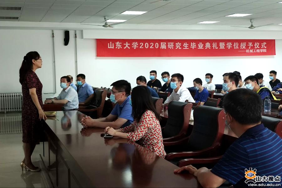 [本站讯]6月28日上午,山东大学举行2020年研究生毕业典礼暨学位授予仪式,机械学院全体研究生毕业生在千佛山校区以观看网络视频直播的方式参加毕业典礼。