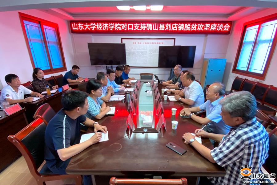 [本站讯]为贯彻落实学校党委关于推进定点扶贫结对帮扶工作任务要求,8月25日,经济学院党委书记王秀丽、院长曹廷求带队前往河南省确山县刘店镇调研对接定点扶贫工作。学校挂职副县长徐文忠、刘店镇党委书记马晨宇、刘店镇政府镇长王巧雨以及政府相关负责同志陪同调研。经济学院党委副书记朱子川、经济系李铁岗教授、王晨光教授、丁言强副教授参加调研。
