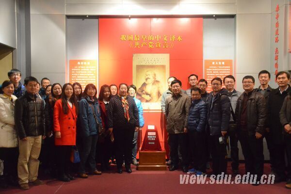 东营市历史博物馆是全省爱国主义教育基地,在这里大家参观了我国最早的中文译本《共产党宣言》和《中共广饶党史展》,了解了该地的革命历史和悠久灿烂的文化。中共刘集党支部是山东省农村最早的党支部之一,我国首版中文译本《共产党宣言》在刘集党支部得以完整保存,这是目前我省保存至今的唯一一本。在讲解员的引领下,大家先后参观了红色幽灵、东方破晓、峥嵘岁月、碧血丹心和光辉永照五个版块。从马克思、恩格斯创立科学社会主义理论到列宁领导十月革命并取得胜利,从中国共产党的诞生到新中国成立后我们党对社会主义的探索与实践,从我们党作出改革开放的历史性决策到形成了中国特色社会主义道路、理论体系和制度,讲解员的讲解和博物馆内丰富的资料,全景再现了社会主义几个世纪以来从理想到实践的波澜壮阔的画面,真实展现了社会主义曲折前进的历程。