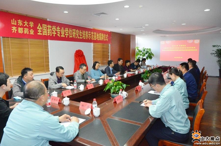 仪式结束后,双方开展座谈交流,就人才联合培养、企业员工培训、横向项目合作等方面开展深入交流。山东齐都药业有限公司有关领导、专家,山东大学药学院部分领导班子成员和教职工代表参加活动。