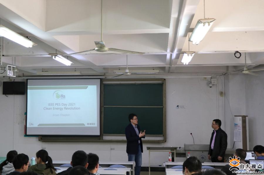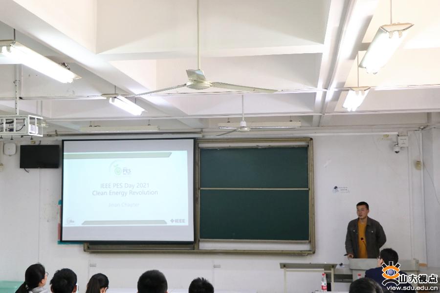 [本站讯]4月16日下午,电气和电子工程师学会电力与能源分会(IEEE PES DAY)2021宣讲会在兴隆山校区举行,本次宣讲会的主题是“Clean Energy Revolution(清洁能源革命)”。讲座特别邀请到电气学院叶华教授和大家交流,“IEEE PES DAY”济南分会大使、电气学院吕天光教授主持了本次活动。“IEEE PES DAY”济南分会学生大使司志远同学和电气学院2017、2018级本科生参加活动。