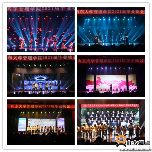 下午六点,毕业晚会在音乐厅举行。大屏幕播放的视频一帧帧流淌过2021届毕业生的大学生活,朝夕陪伴着管院学子的“感动山大”人员以视频的形式祝福同学们未来可期,前途坦荡;开场舞点燃了晚会的气氛;毕业班全体辅导员合唱的《起风了》仿佛带着全体毕业生回到四年前的夏天;2017级会计一班本科生带来影子剧《昨天 今天 明天》,在光影中展现大学四年的笑与泪;毕业生代表带来的朗诵《一起走过的青春》向我们娓娓道来在山大的难忘时光;各班以歌曲、小品、短剧、舞蹈等形式致敬青春,回忆同窗岁月。
