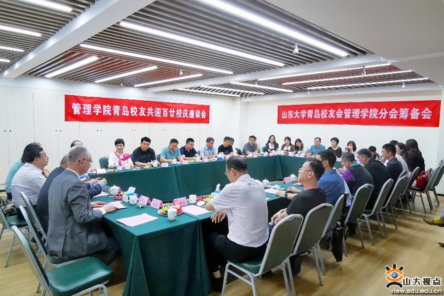 下午,管理学院青岛校友共迎百廿校庆座谈会暨山东大学青岛校友会管理学院分会筹备会在EMBA校友企业“卡内基训练”公司举行,37位校友代表参加座谈会。武常岐、石岩分别介绍了近年来管理学院的发展、在服务校友方面的工作情况和成果;校友们依次发言,分享自己在山东大学读书的成长和收获,纷纷表达对母校和老师的怀念与感恩。大家也为学校学院发展献言献策,表示今后在学院校友分会筹建工作中将积极参与、贡献力量。吉小青作总结讲话,他向广大校友发出热情邀请,欢迎大家十月份再回母校,共享百廿校庆。