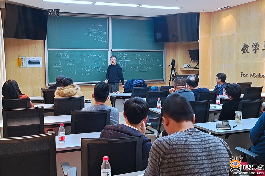 会上,彭实戈院士结合自身的科研经历,提出对数学与交叉科学合作交流与融合发展的相关看法和建议。他表示,做研究既需要有自己思考钻研的过程,又需要多和不同研究方向的学者多交流讨论,在交流研讨中可以互相启发、互相借鉴,有利于促进学科更好的交叉。数学与交叉学科的融合发展不能急于求成,做学问要做真学问,绝不能奔着发文章而做学问,做好学科交叉不能只局限于中心内部,可以将视野拓宽,借助青岛的地理优势,尝试与当地其它科研机构进行结合交叉。只要抓准切入点并持之以恒,也能做出比肩甚至赶超世界一流的学科交叉领域成果。彭实戈院士还从概率空间与传统条件期望切入主题,深入浅出地介绍自己在倒向随机微分方程、非线性期望等方面的理论研究成果,在场教师讨论交流,纷纷提出个人疑问和想法,彭实戈院士为大家答疑解惑,现场学术氛围浓厚。