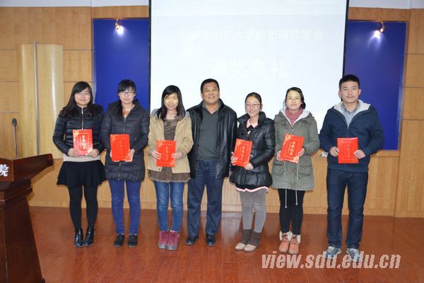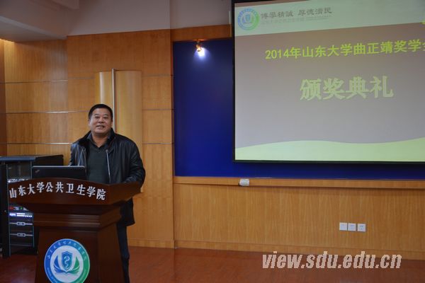 [本站讯]12月24日,2014年度曲正靖奖学金颁奖典礼在趵突泉校区举行。山东瑞京房地产有限公司董事长曲建春、公卫学院党委书记李士雪、公卫学院副院长王建和公卫学院党委副书记李士保出席颁奖典礼。