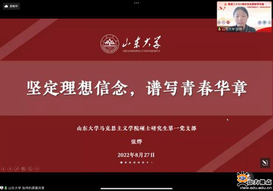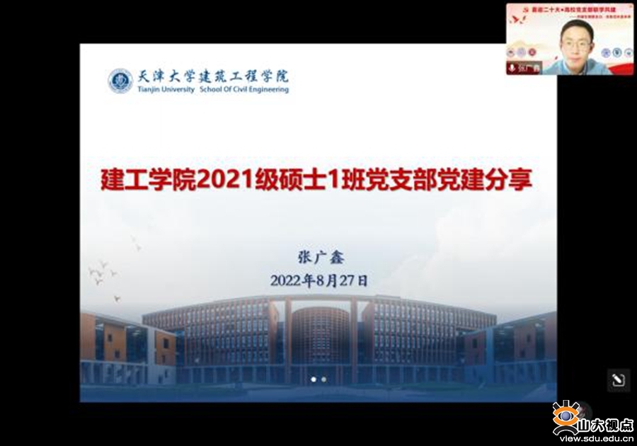[本站讯]为迎接党的二十大胜利召开,进一步增强高校研究生党支部间的交流,激发基层党组织工作活力,更好地发挥党组织战斗堡垒和党员先锋模范作用,8月27日上午,山东大学马克思主义学院举办研究生党支部“喜迎党的二十大·高校党支部联学共建”活动,邀请了北京大学软件与微电子学院、清华大学深圳国际研究生院、吉林大学马克思主义学院、天津大学建筑工程学院、东北师范大学马克思主义学部等单位研究生党支部以及北京大学软件与微电子学院研究生会共同开展联学共建。