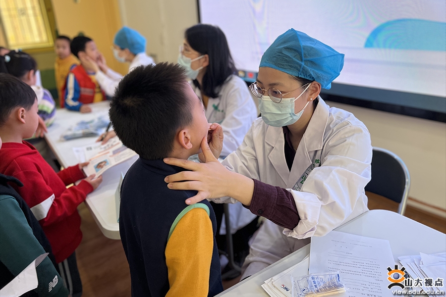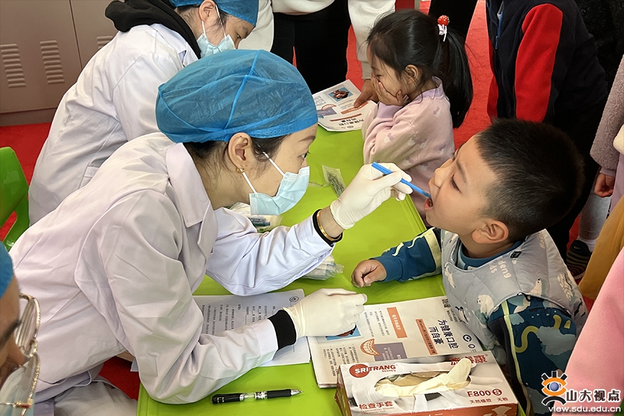 医院青年医生魏玲玲、李添翼、杜密、汤思琦及部分学生志愿者分别走进山东大学第一幼儿园、第二幼儿园和第三幼儿园为小朋友们开展口腔健康知识“小课堂”和口腔健康义诊,助力小朋友培养良好的口腔卫生习惯,自觉呵护健康牙齿。