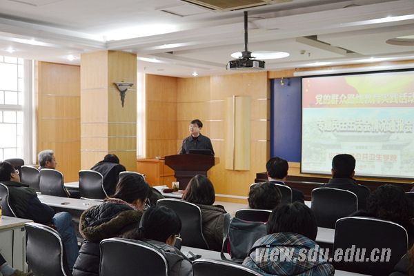 [本站讯]1月17日,公共卫生学院举行党的群众路线教育实践活动专题民主生活会情况通报会,学校教育实践活动第十督导组成员、校工会副主席丁培卫参加了会议,公卫学院党委书记李士雪向全院教职员工通报了民主生活会的相关情况,副书记李士保主持通报会。