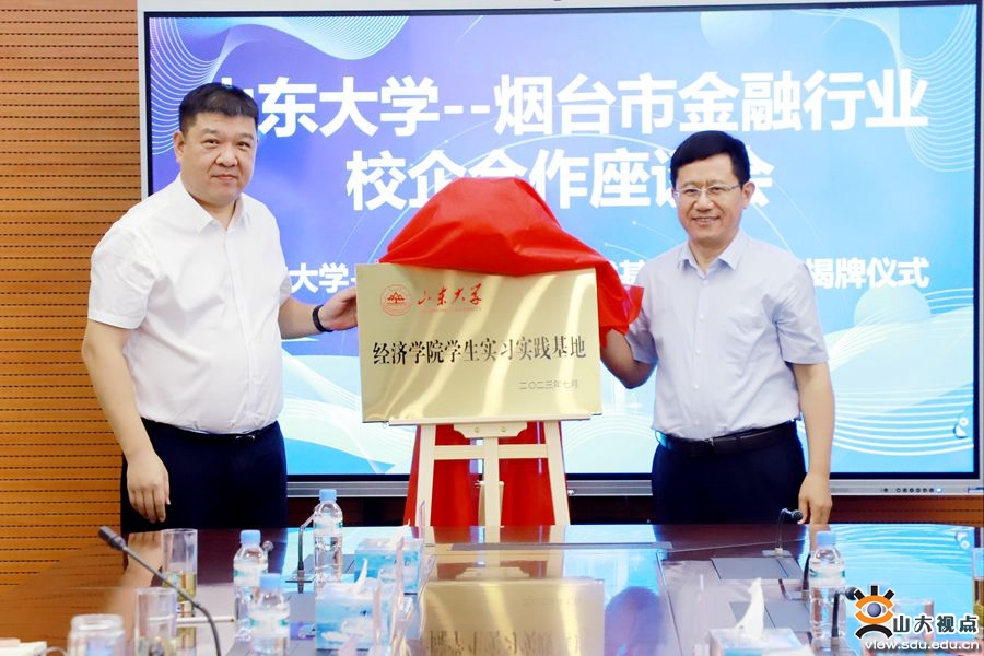 [本站讯]7月28日,经济学院与烟台市金融行业机构举行校企合作座谈暨烟台银行合作签约仪式。烟台市委常委、副市长沈健,烟台市地方金融监管局局长贾磊,烟台银行党委书记、董事长曾勇,中国银行烟台分行党委书记、行长付廷泉;山东大学经济学院党委书记董春杰,常务副院长石绍宾,正处级辅导员李维林出席活动。