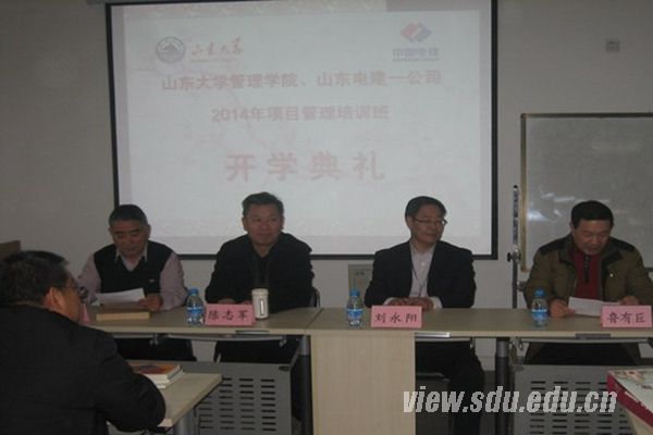 典礼上,刘永阳就此次培训班开班的目的以及希望达到的效果向学员们作了介绍。他说到,此次培训是企业成长发展过程中对人才进行再培训的关键环节,学员们要珍惜这次宝贵的学习机会,认真学习讲师们教授的专题与观念。陈志军对山东电建一公司选择山东大学进行培训表示感谢,并简要介绍了山东大学、山大管理学院的历史和相关情况,表示将尽最大努力把本次培训做好,也希望参训学员们度过一个愉快充实的学习期。典礼结束后,陈志军向学员们主讲了《管理规范与创新》课程。