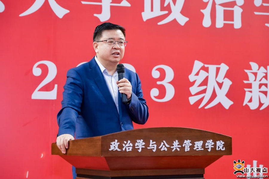 马奔在致辞中带领同学们回顾了学院的历史沿革,介绍了学院在学科特色、师资队伍、教学科研、人才培养等方面的发展情况及取得的突出成果,并表示学院将积极提供最好的专业知识、拓展平台和职业指导,助力同学们实现人生目标与远大理想。马奔对2023级新同学提出了三点希望:一是积极乐观、快乐成长。在面对成长带来的挑战和机遇,要心怀乐观、坚毅勇敢,不断追求内在的收获,并感受到知识的魅力和自我实现的喜悦;二是潜心研学、专业为本。既要有“天生我材必有用,千金散尽还复来”的学术自信,也要有“长风破浪会有时,直挂云帆济沧海”的学术壮志,还要有“衣带渐宽终不悔,为伊消得人憔悴”的学术热情,最重要的是要有“先天下之忧而忧,后天下之乐而乐”的学术情怀。要通过刻苦的学习和实践,培养自己的专业素养,建立坚实的学术基础和求知欲望,为将来的发展建立坚实的基础。三是心怀天下,全球视野。希望同学们能心怀天下,牢记山大“为天下储人才,为国家图富强”的办学宗旨和学院“知政为公,厚德笃行”的院训,培养开放思维,拓宽国际视野,积极参与国际交流与合作,为未来的全球事务作出积极贡献。